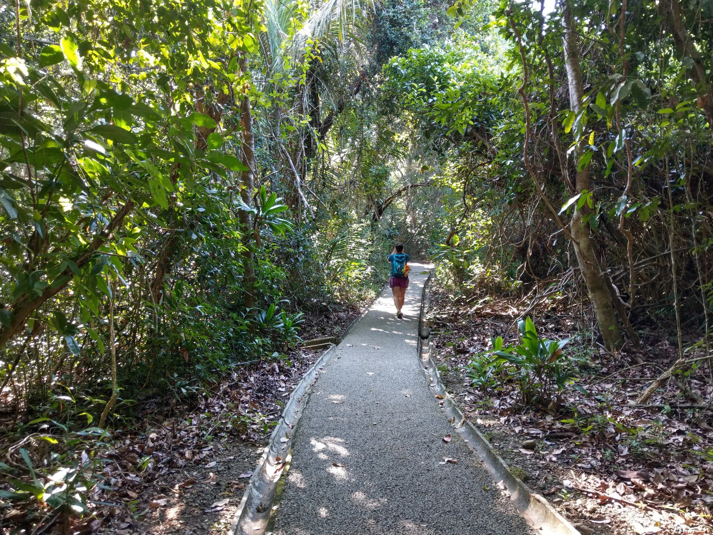 This trail is mostly gravel but completely flat and is a nice walk with beach views and opportunities to see lots of lizards and iguanas hanging out in the trees along the beach.