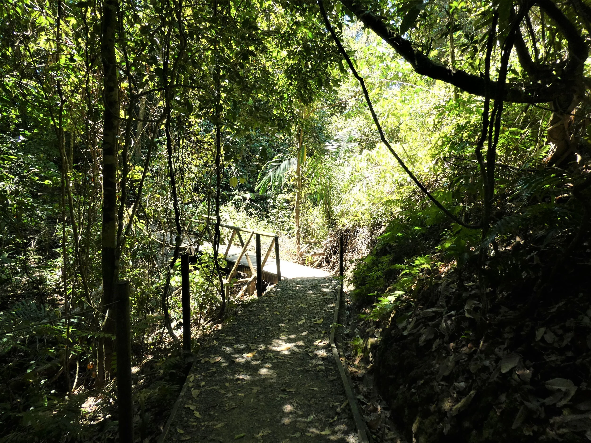 The Sloth Trail intersects with El Manglar Trail before El Manglar Trail turns right towards Playa Espadilla Sur (simply continue straight here to get onto The Sloth Trail). It continues as a raised boardwalk for about half of the trail and then turns into a paved and mostly flat path that goes through some dense section of rainforest, with very minor ups and downs.