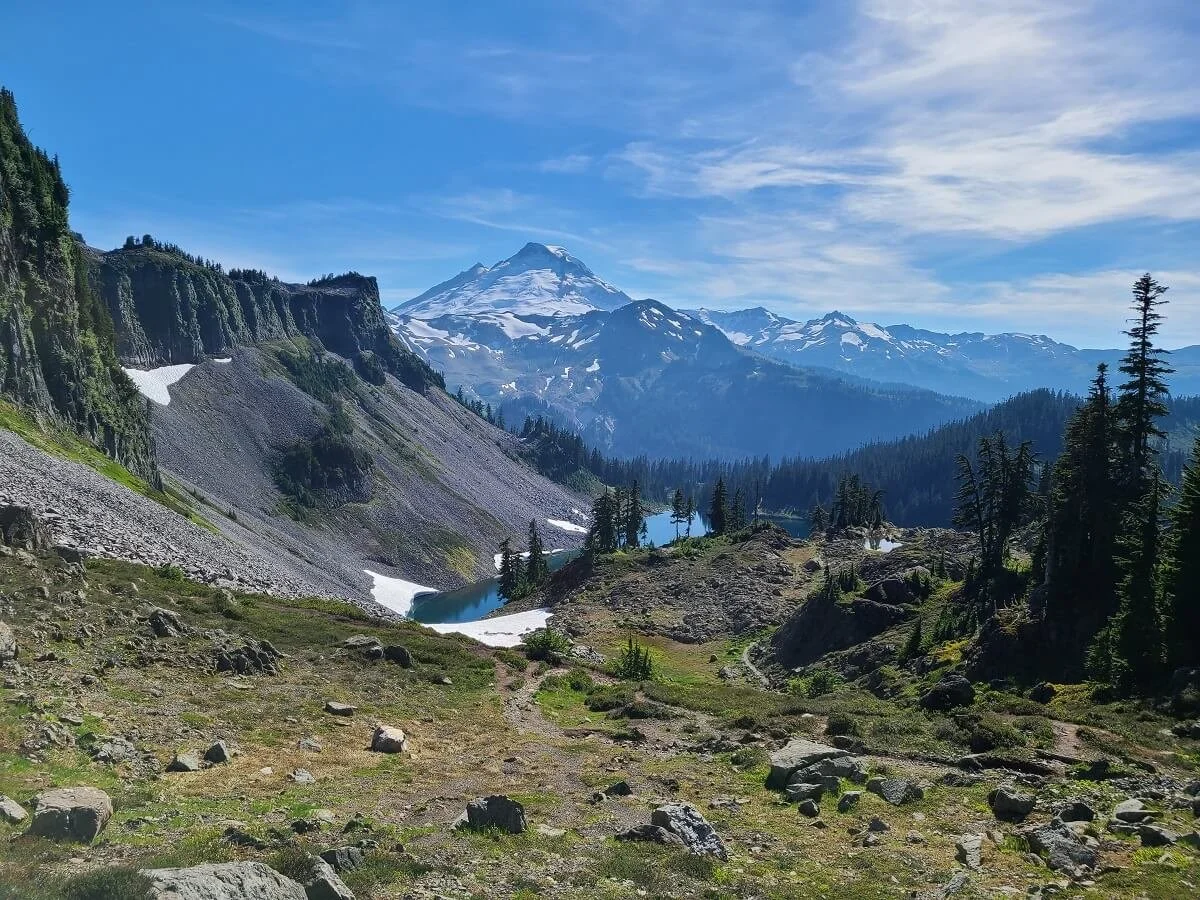 The view of Mount Baker near Herman Saddle on the Chain Lakes Loop
