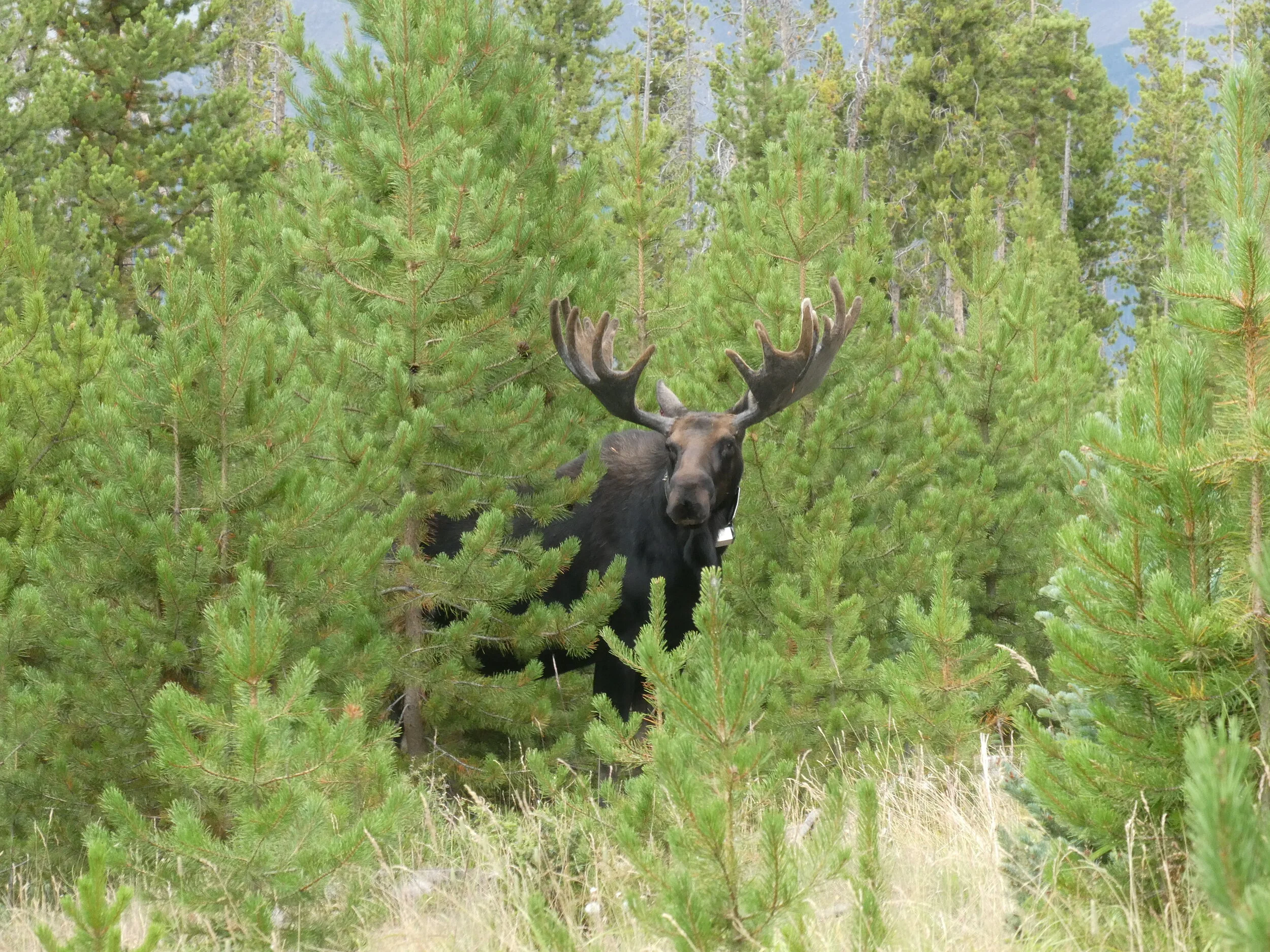 Moose – these guys are a little more elusive to find. For your best chances, be on the lookout at dawn and dusk near water. They are most often spotted at Sprague Lake and Coyote Valley (on the west side of the park). We spotted one at both places!