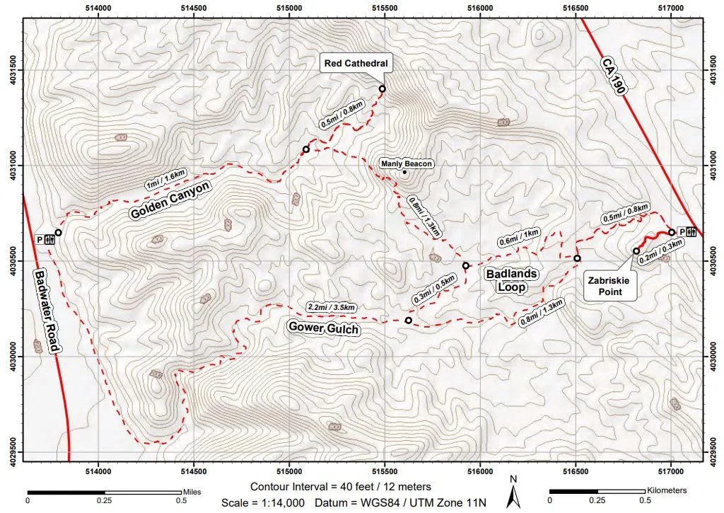 To help you make better sense of all the different version of this hike, take a look at this map provided by the NPS of the Golden Canyon trail area.