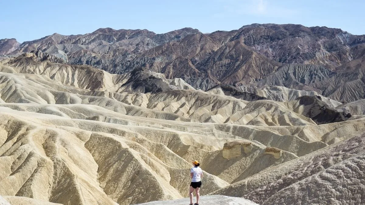 End your day at Zabriskie Point so that you can see the golden hour glow off the badlands!