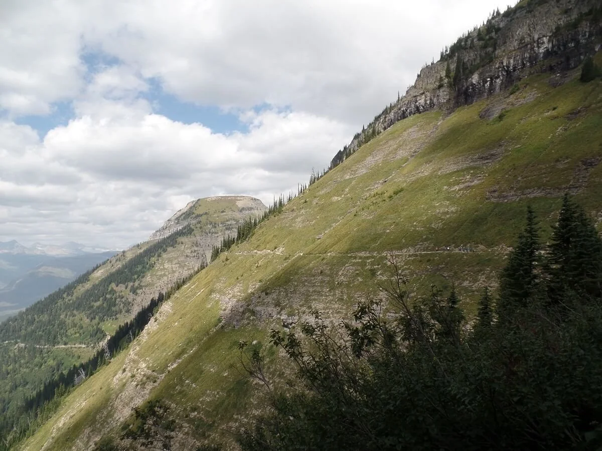 Can you see the Highline Trail as it traverses across the side of the mountain? This is why there are views the whole way!