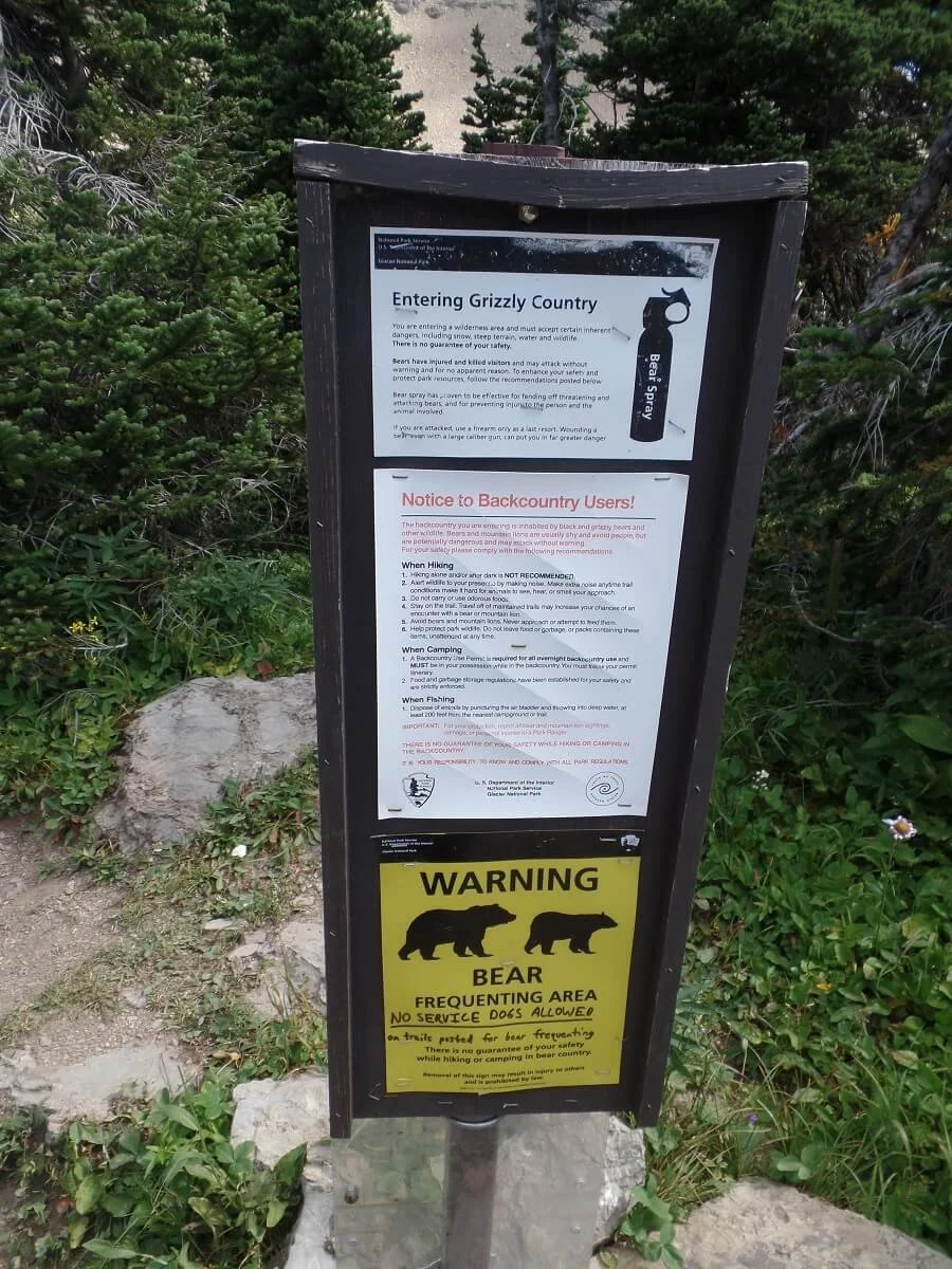 Be bear aware. Grizzly bears call Glacier National Park their home, and they frequent this area. They are often spotted along the Highline Trail, particularly near the spur trail to Swiftcurrent Pass. Often, the Highline Trail may close due to Grizzly activity, which was the case for a few days when we were in the park. In fact, we had heard that a woman was approached by a bear during that time, but thankfully she made it out okay with no major injuries.