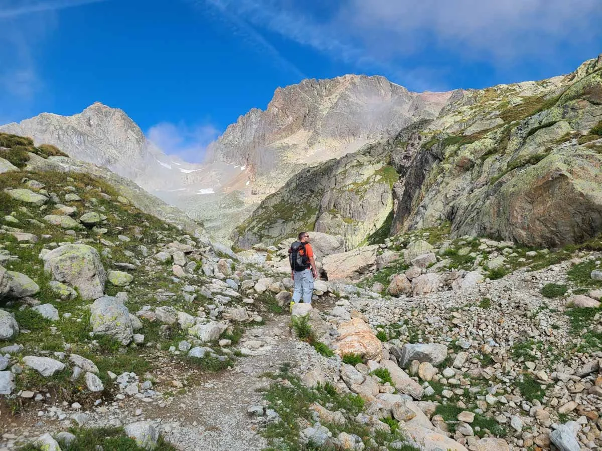 While the trail from L’Index may be a bit rockier and along more rugged terrain, we definitely wouldn’t say it’s technical at all. We thought it was actually pretty straightforward and easy. The trails from Flegere are admittedly a bit more “trail-like” with a lot of straightforward dirt and gravel path through a subalpine meadow type of environment, but they do still have their fair share of loose rock and gravel, and they both end up on final steep rocky ascents just before the lake. Plus, there is a lot more elevation gain involved on the hikes from Flegere, making them a bit more strenuous of a hike in our opinion. When we were hiking down the trail from the lake back to Flegere, we were certainly glad that we didn’t hike up it earlier- it seemed like it would be much harder with all the climbing.
