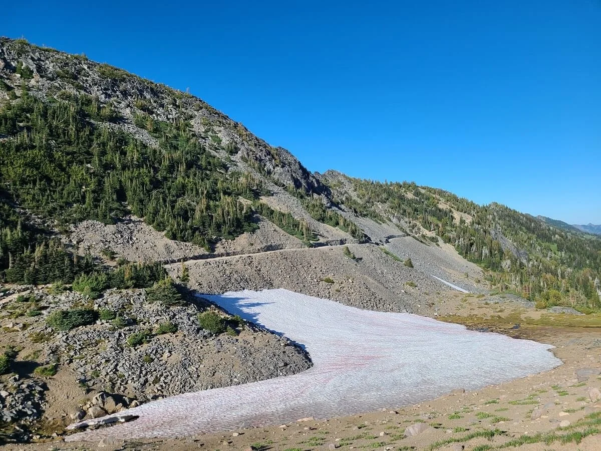 Once on Sourdough Ridge, take a left and continue to follow the trail. It initially climbs steeply a bit, but it’s pretty brief. After, it’s an easy- going slight climb upward, followed by a gentle descent to Frozen Lake.