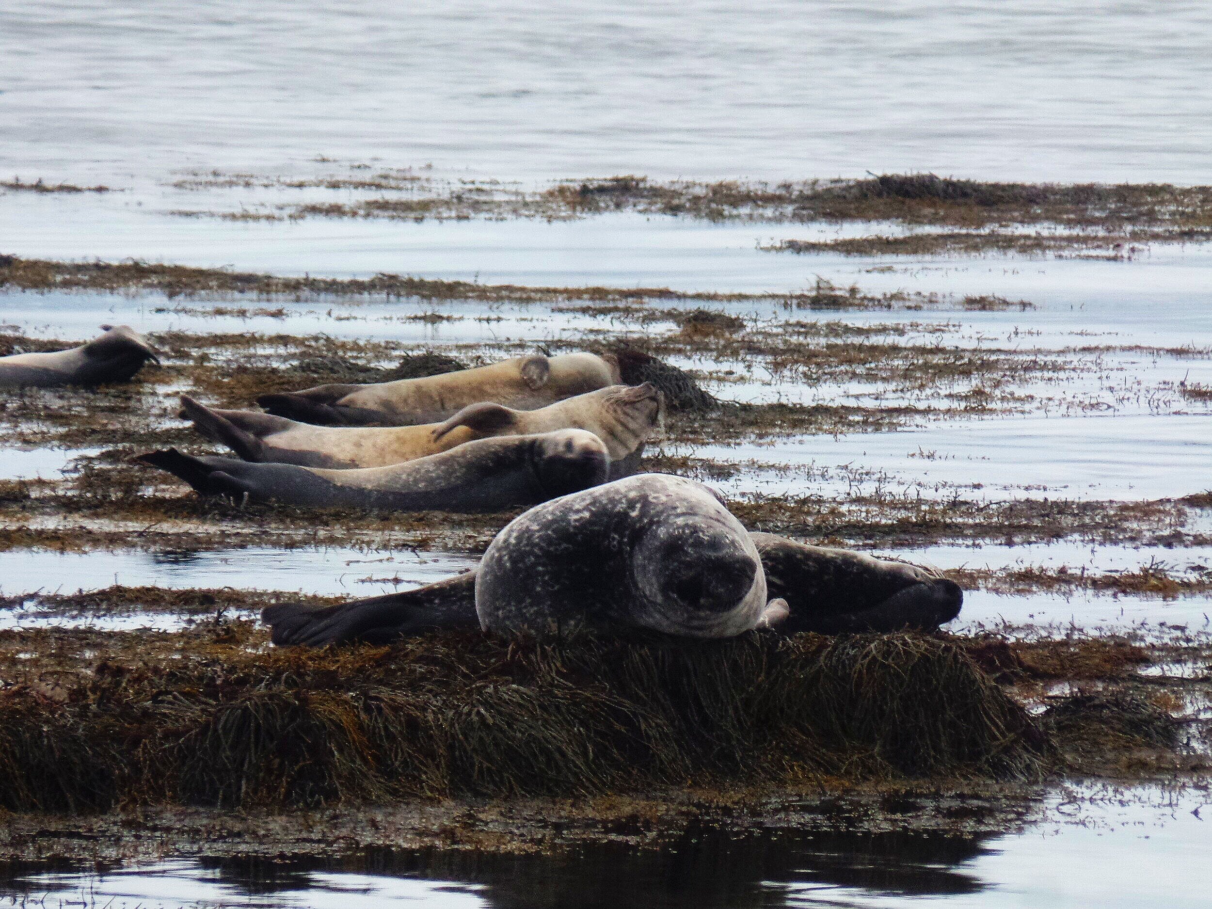 I walked out as far as I could on the rocks before it just became globs of seaweed, and kept a nice distance between me and the seals. But check them out… so cute!